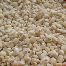 Dehulled maize kernels used in traditional dishes.